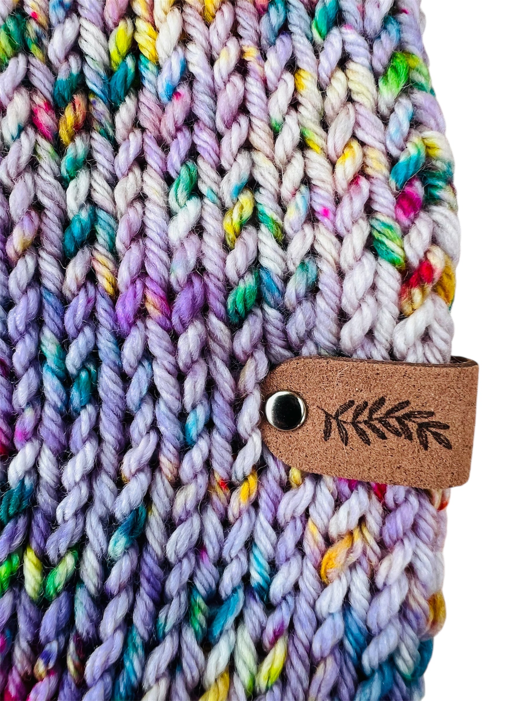 This scarf has been knitted with hand dyed yarn, in Tasmania, Australia and has our unique leather label.