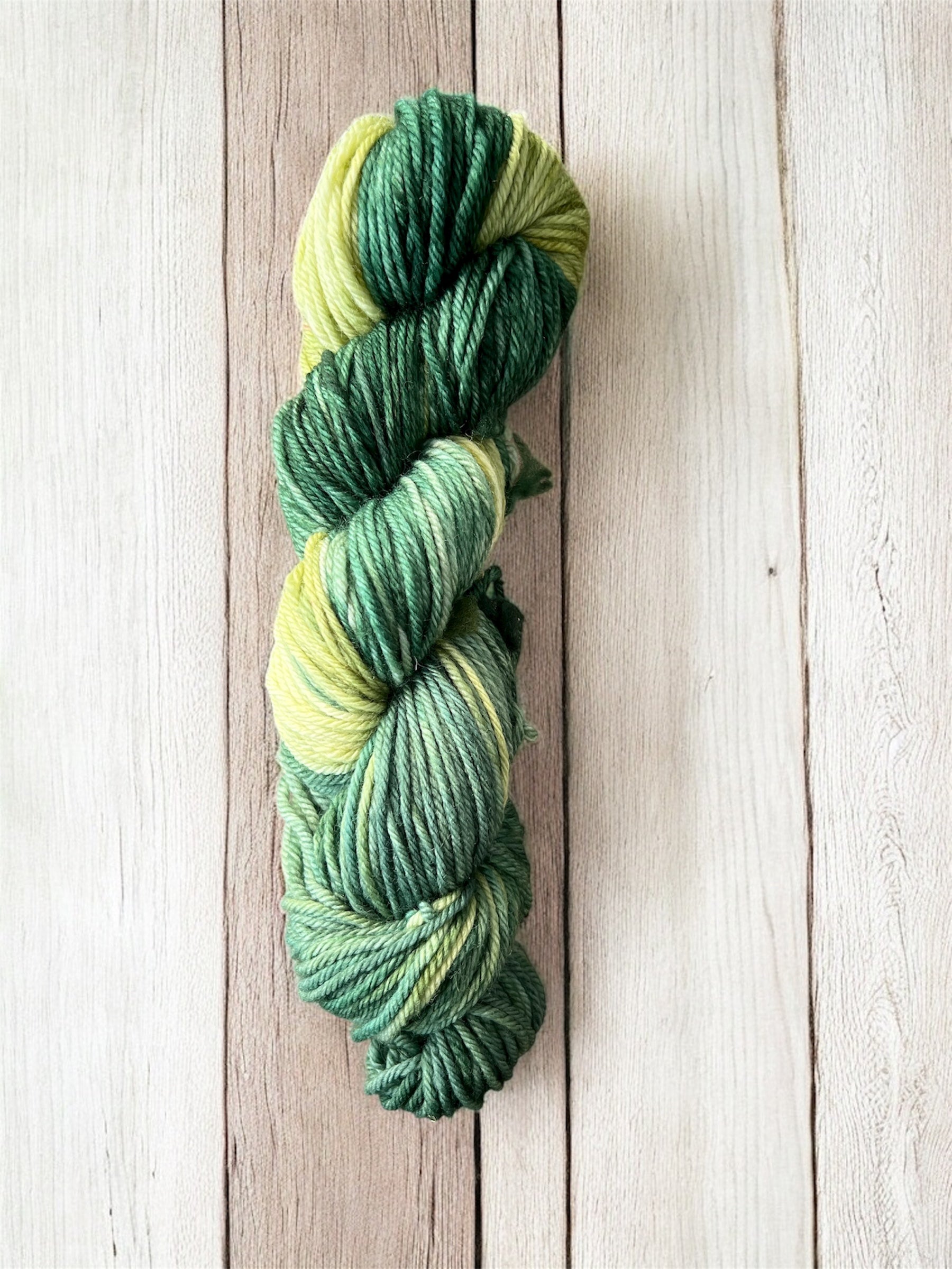 Strahan is a beautiful mix of light to dark green inspired by the rugged wilderness of Tasmania's East Coast World Heritage Area , each skein is hand dyed in my studio on our small farm in Bagdad, Tasmania