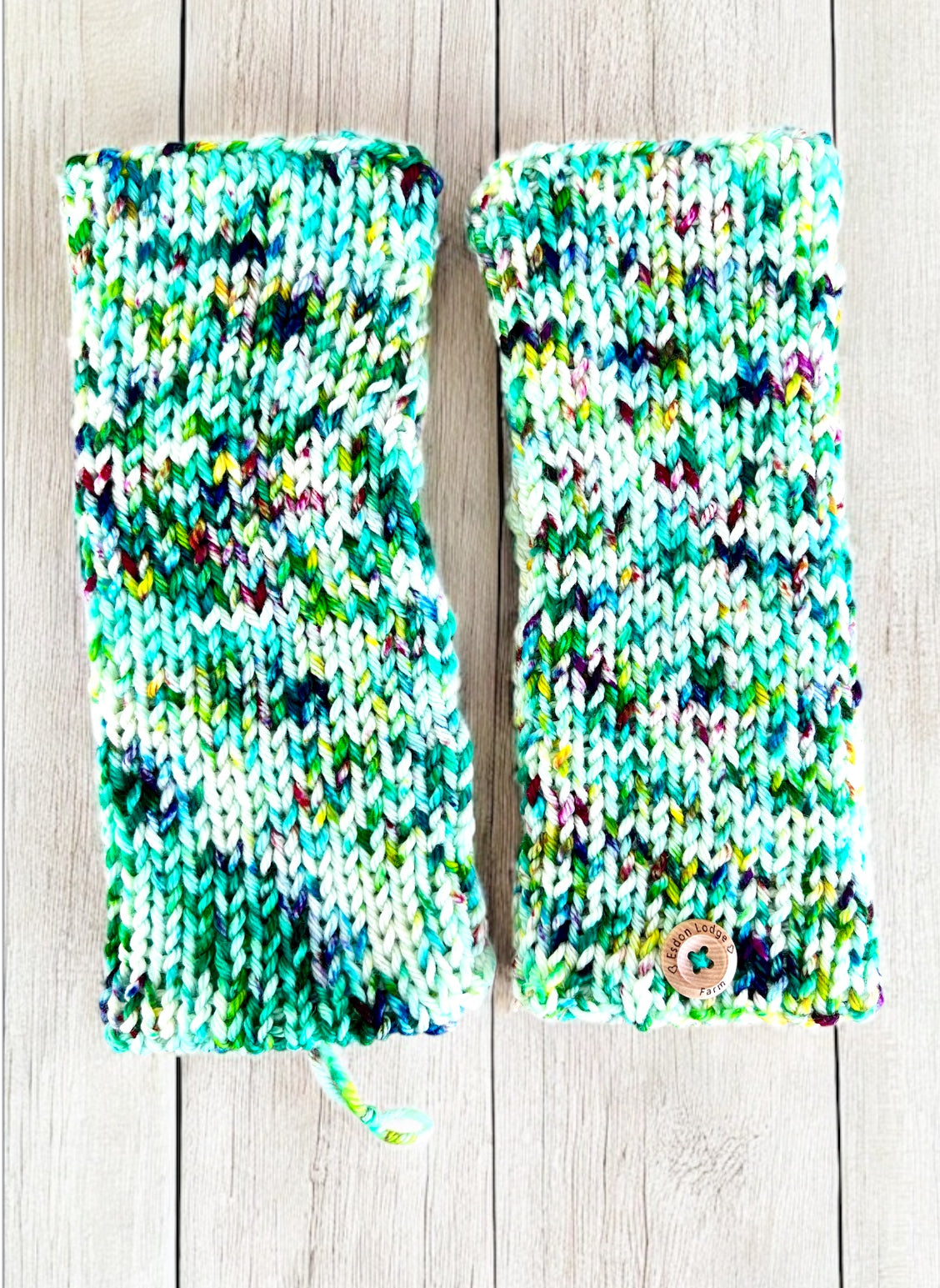 Stay Warm and Cosy with these Australian Merino Wool Fingerless Gloves, created with unique hand dyed yarn.