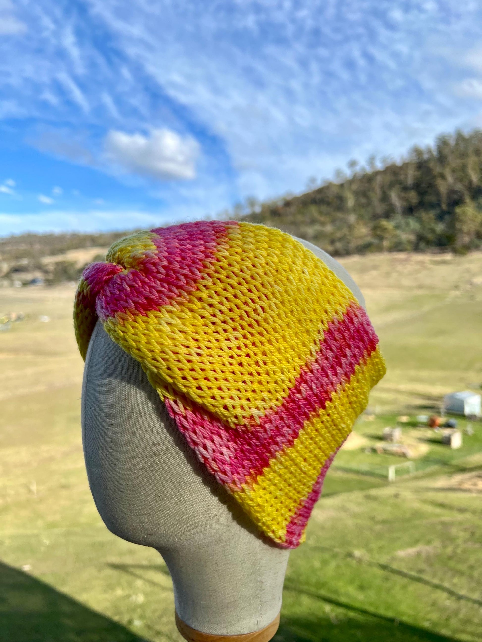 This headband has been knitted with hand dyed yarn, in Tasmania, Australia .