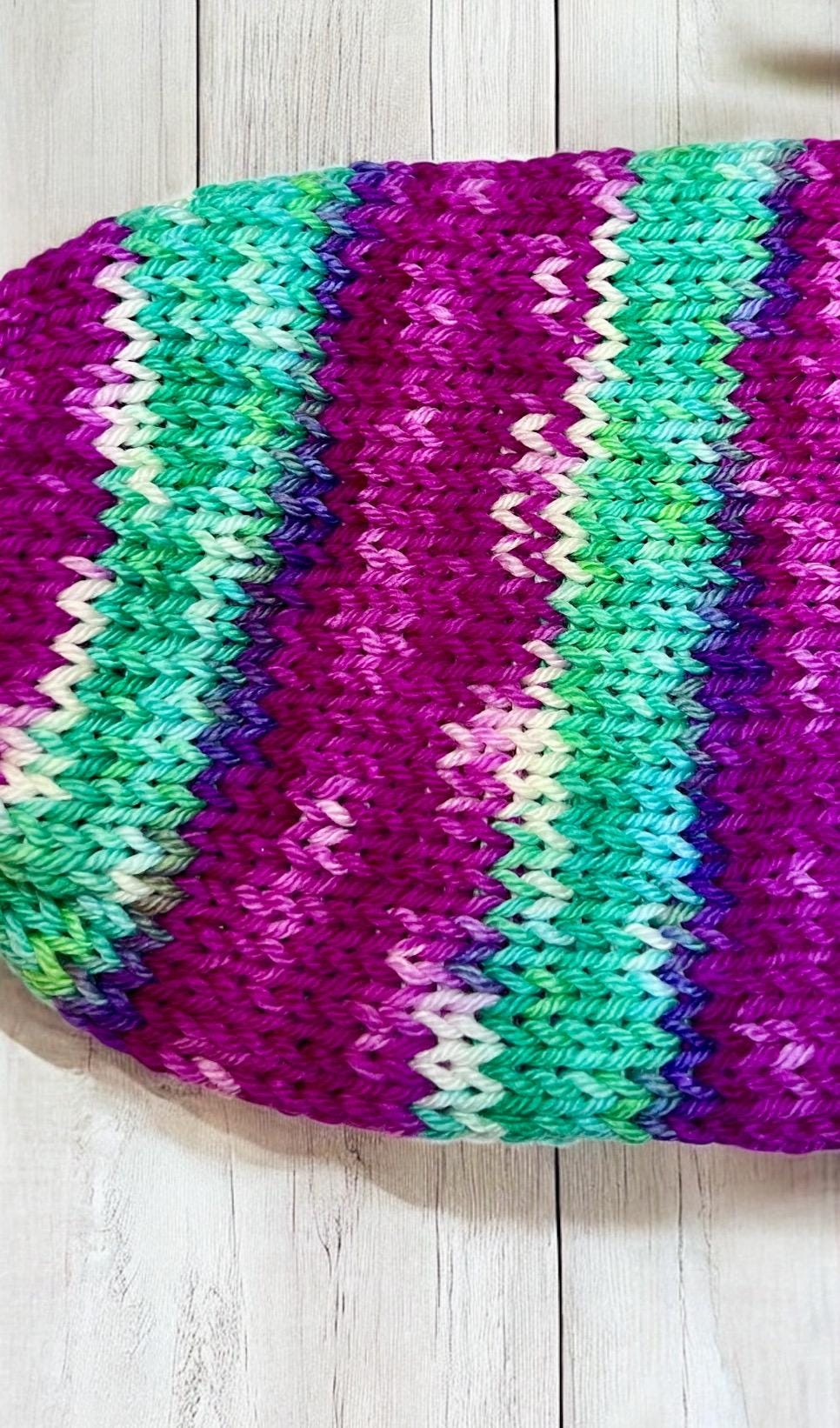 Raspberry Ripple is a lovely blend of Raspberry , mint and white colours each skein is hand dyed in my studio on our small farm in Bagdad, Tasmania.