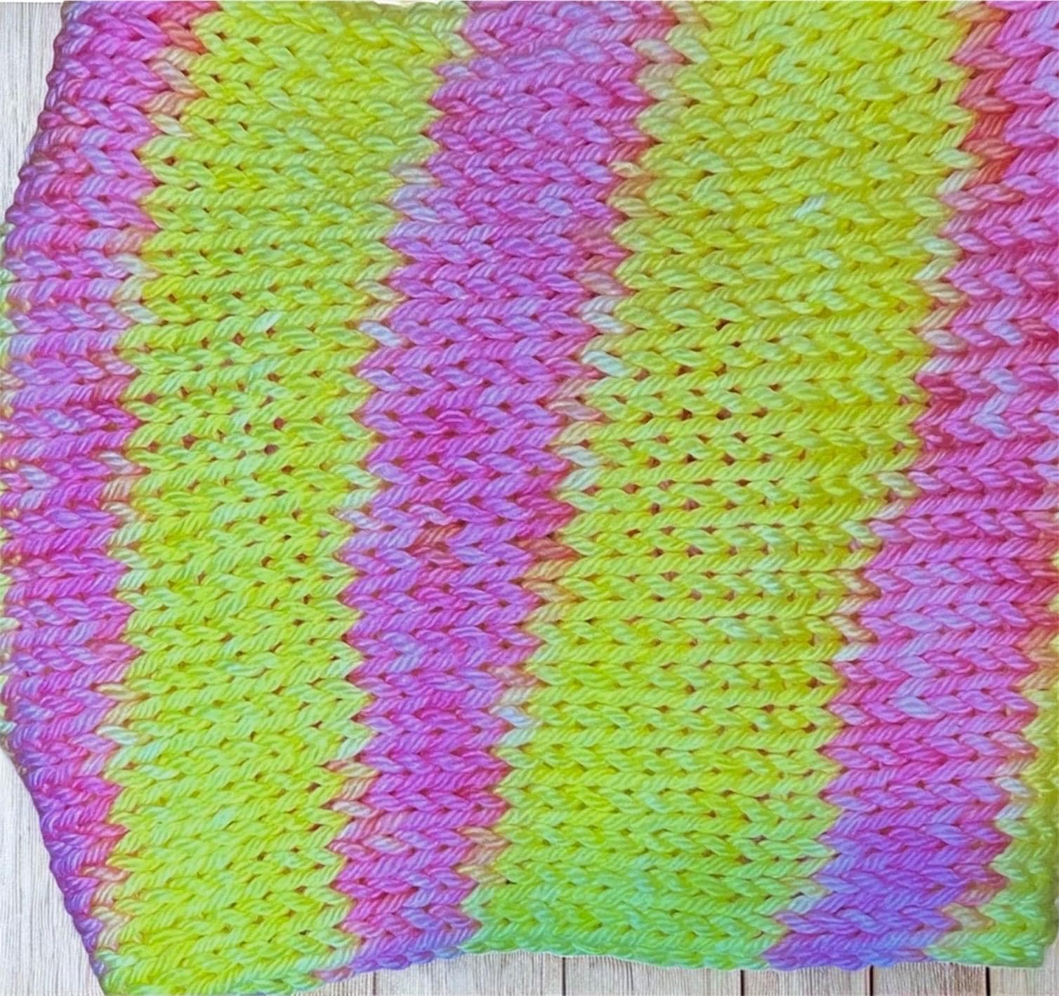 Sherbet Lemon is a 100g blend of hot pink and lemon yellow each skein is hand dyed in my studio on our small farm in Bagdad, Tasmania.
