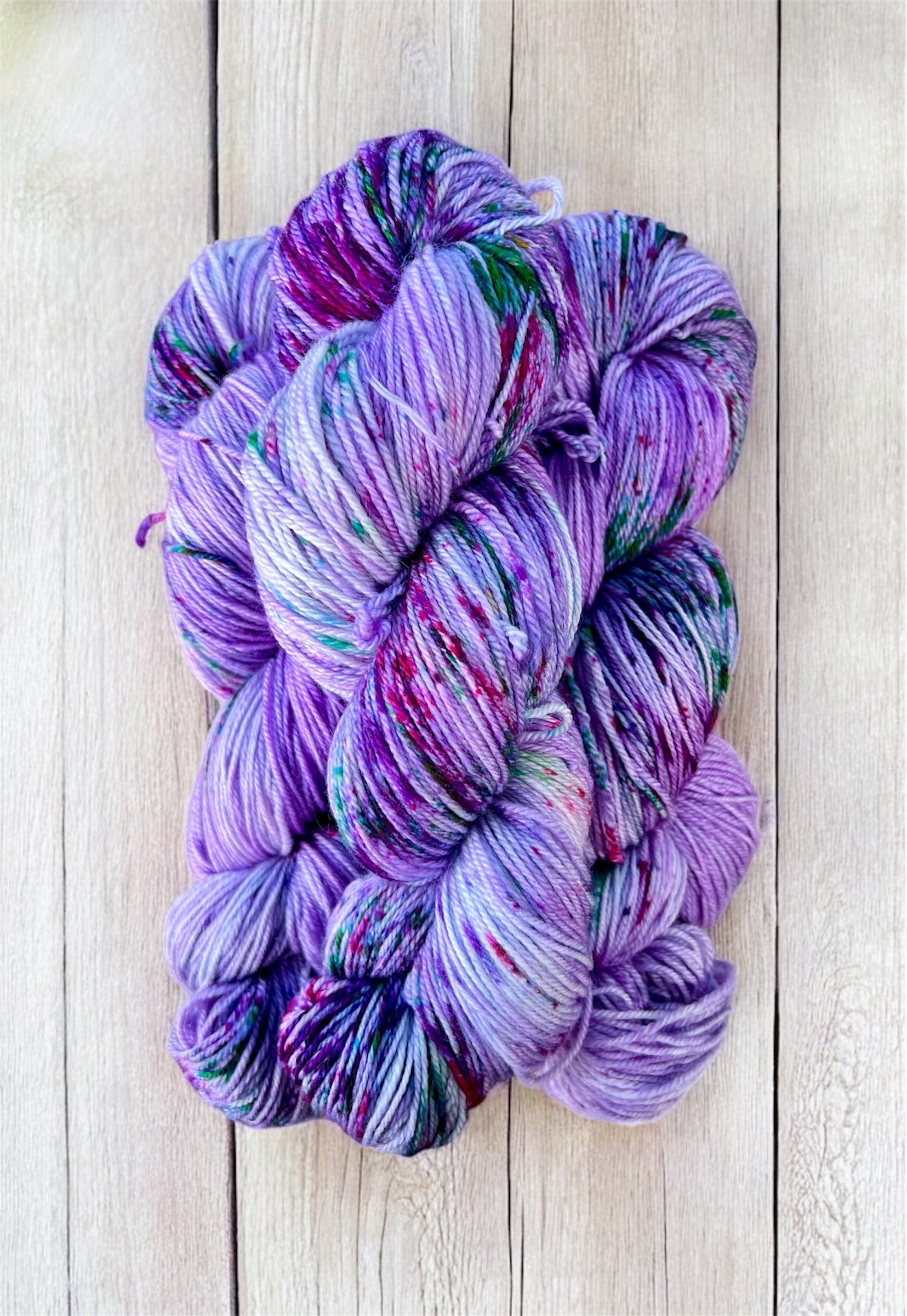 Lavender Green sock yarn is a beautiful specked yarn with a base colour of purple lavender and is hand dyed on our small farm in Bagdad, Tasmania.