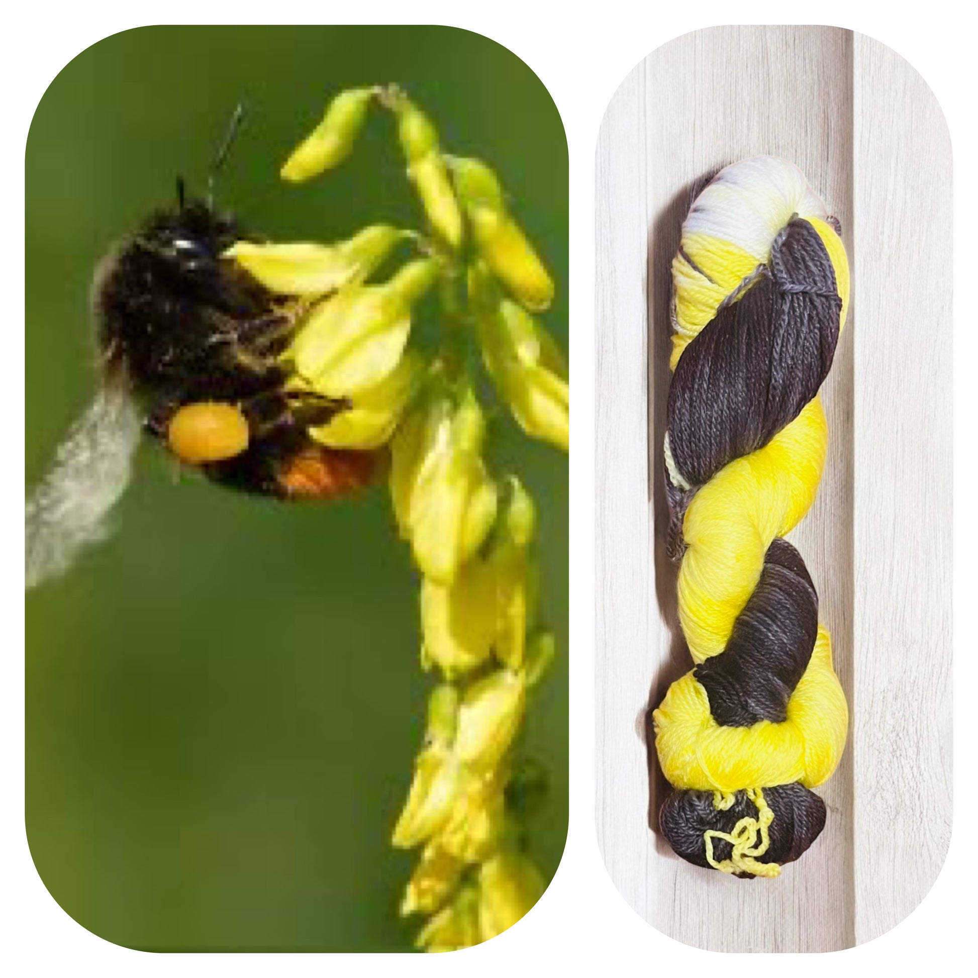 Bumblebee is a blend of yellow & black with this colour combination inspired by the sweet little bumblebees that visit our garden in Tasmania, each skein is hand dyed in my studio on our small farm in Bagdad, Tasmania.