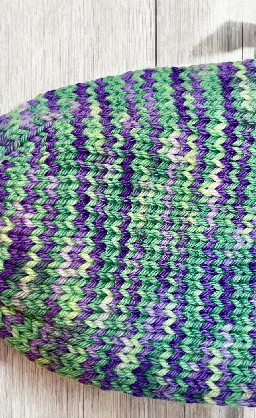 Country Iris is a combination of purple & green with this colour combination inspired by our beautiful irises grown in Tasmania , each skein is hand dyed in my studio on our small farm in Bagdad, Tasmania.