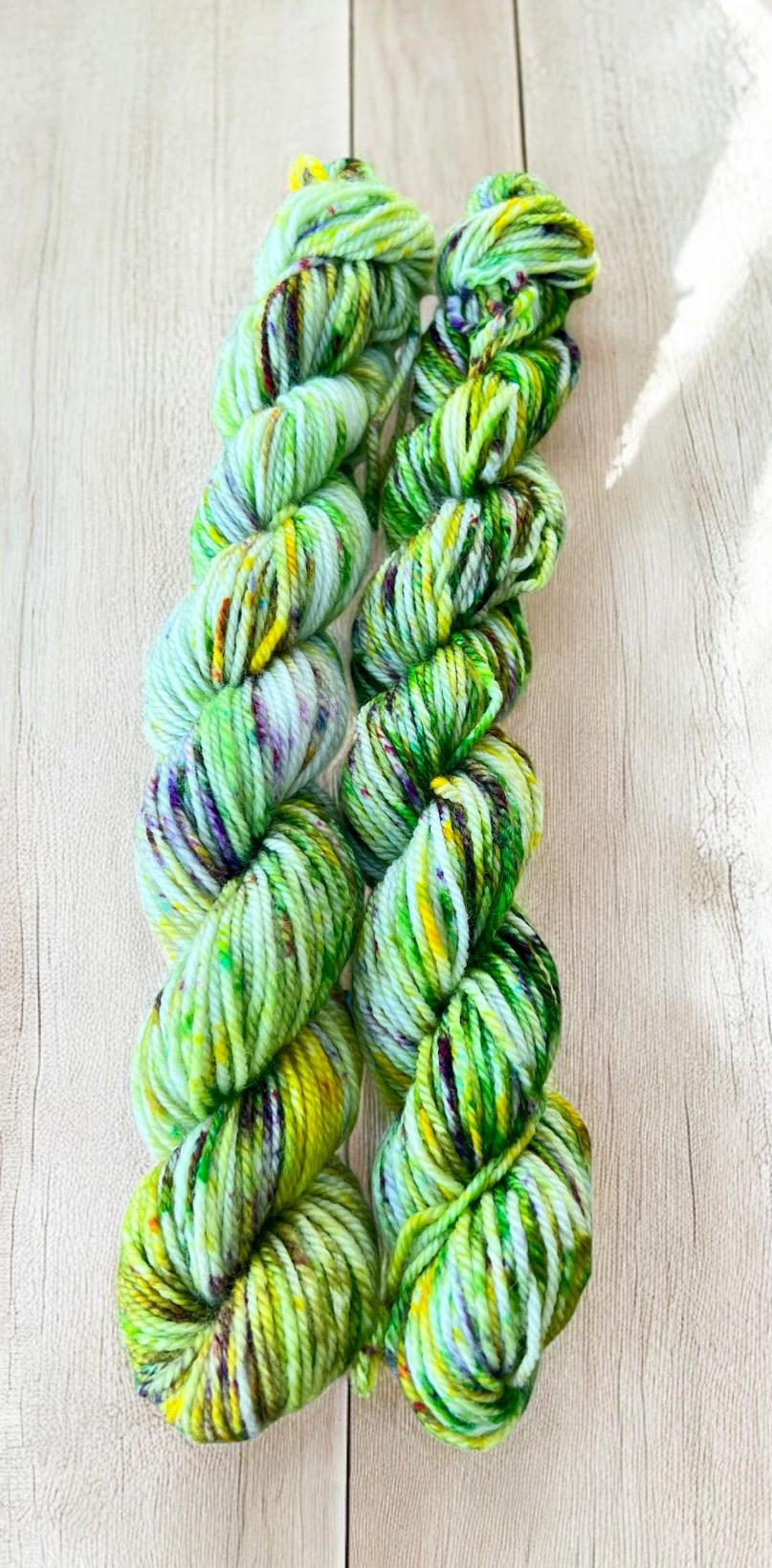 Grab your favourite 20g mini skein, great for projects when you need a pop of colour to your handmade creation or to add a contrast to heels and toes in your next sock project. Each skein is hand dyed in Tasmania.