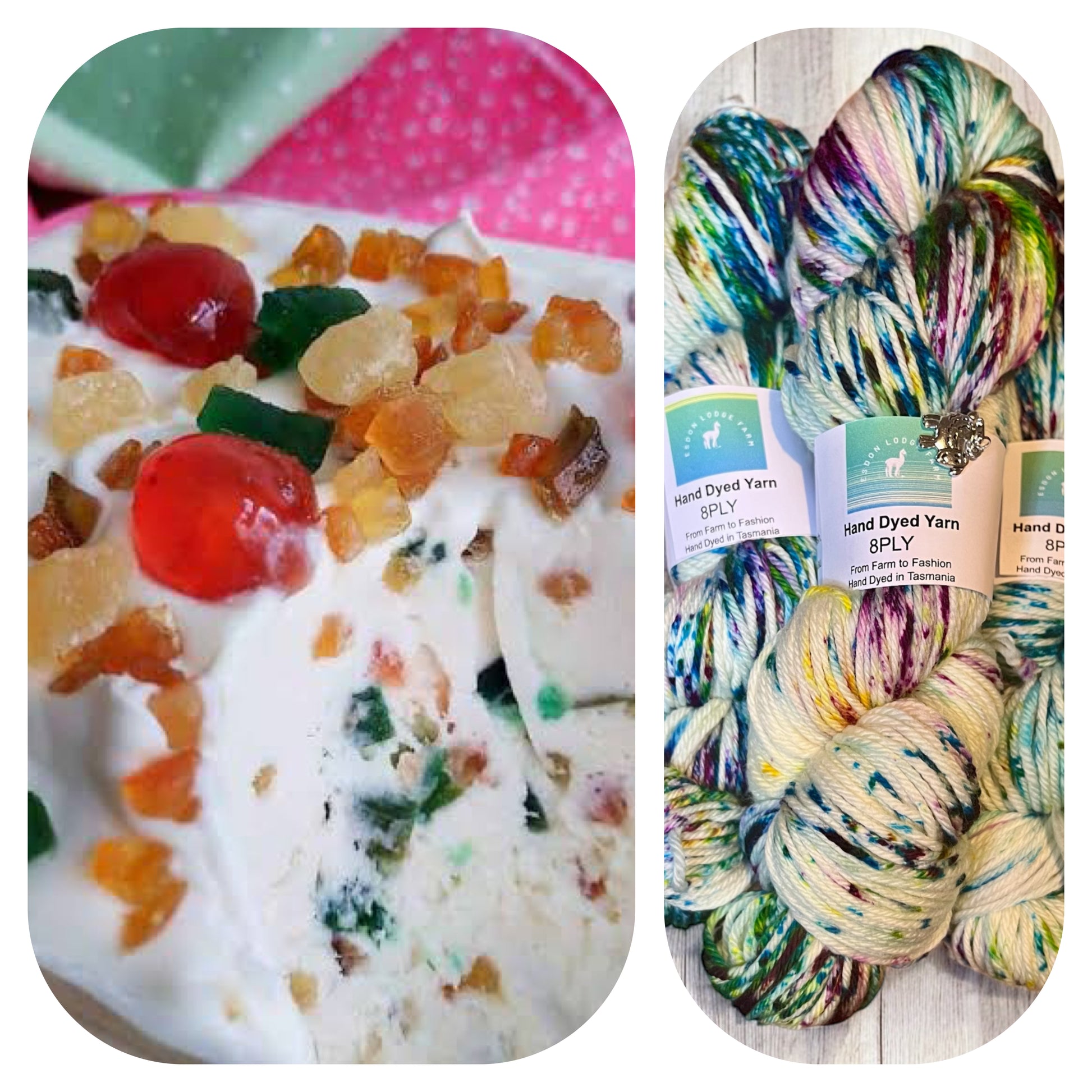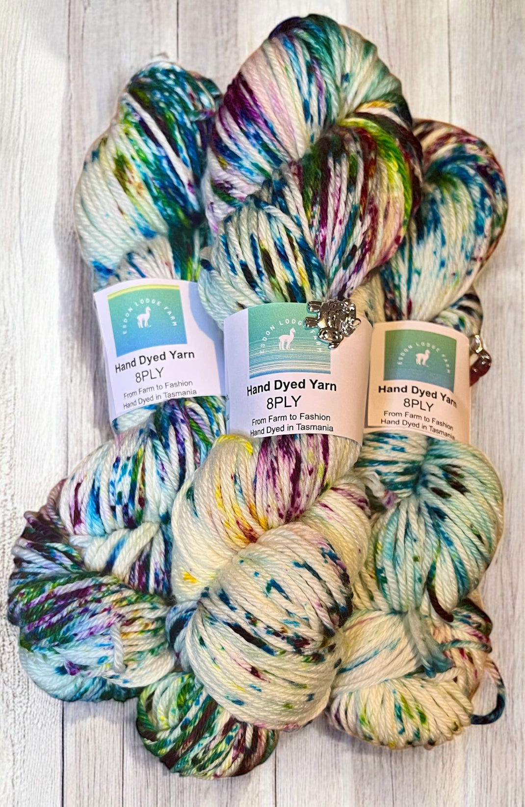 Tutti Fruitti is a delightful Speckled yarn of multi colours each skein is hand dyed in my studio on our small farm in Bagdad, Tasmania.
